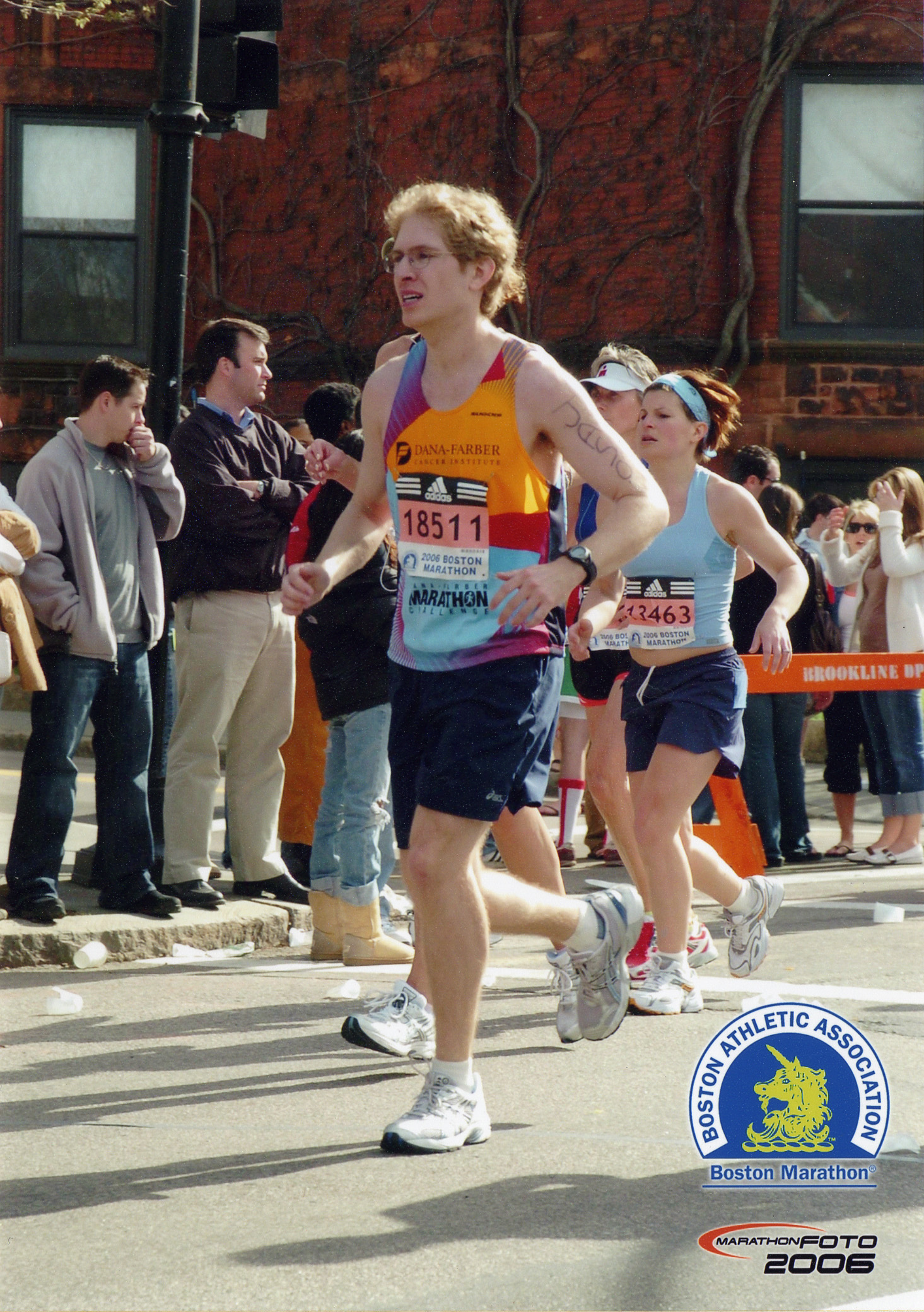 This is one of the official Boston Marathon photos, taken somewhere along Beacon St. in Brookline. With only a few miles left, I was in a lot of pain. I think the expression on my face shows that clearly.