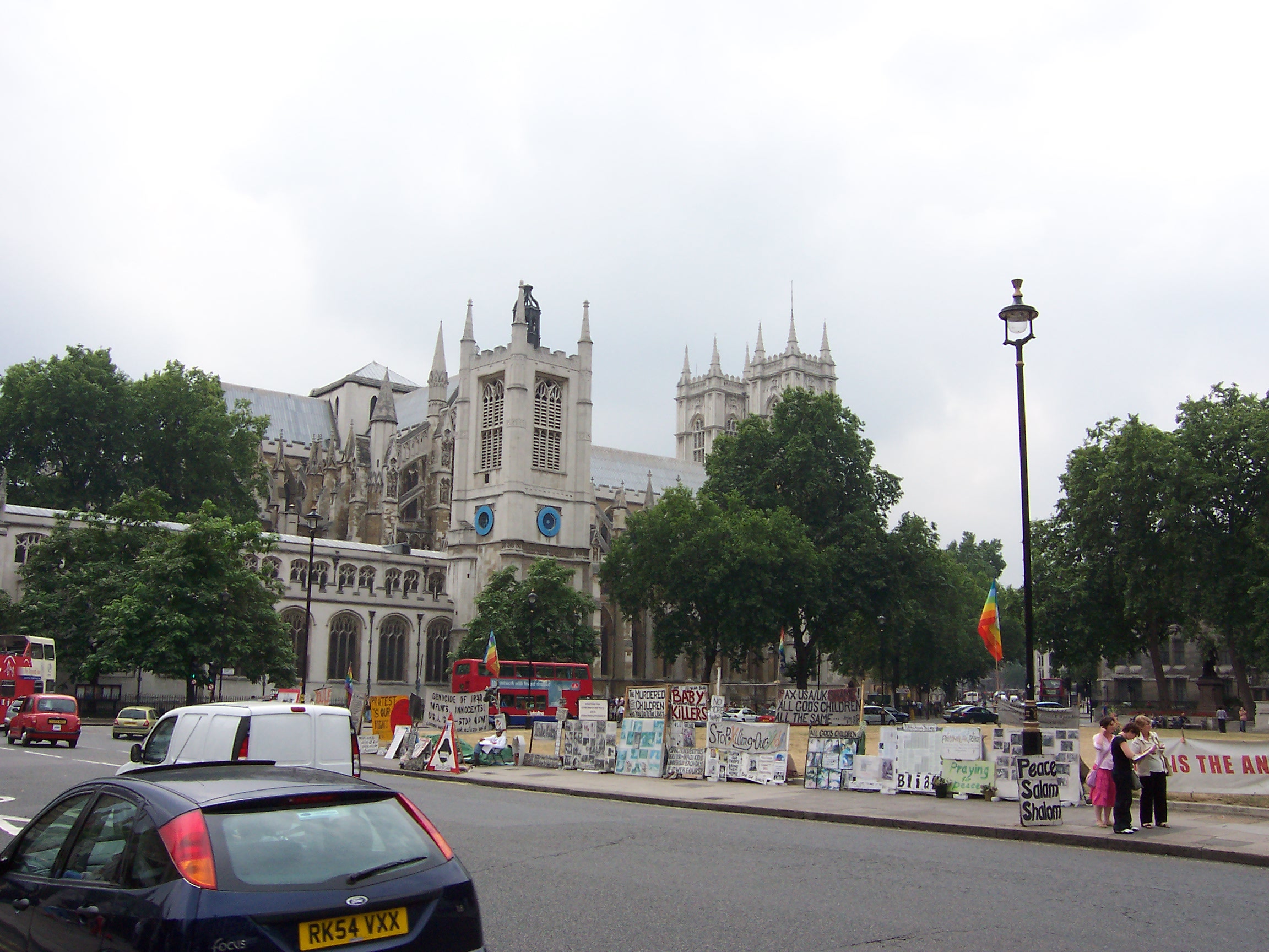 Exterior view of Westminster Abbey, partially hidden