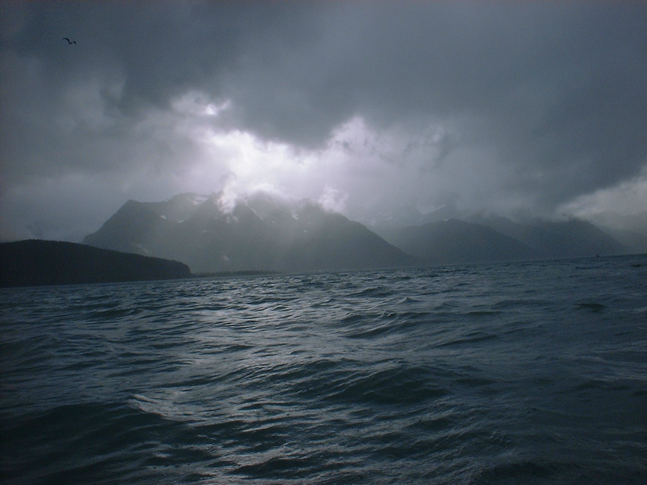Sunshine peaks through the clouds at Seward