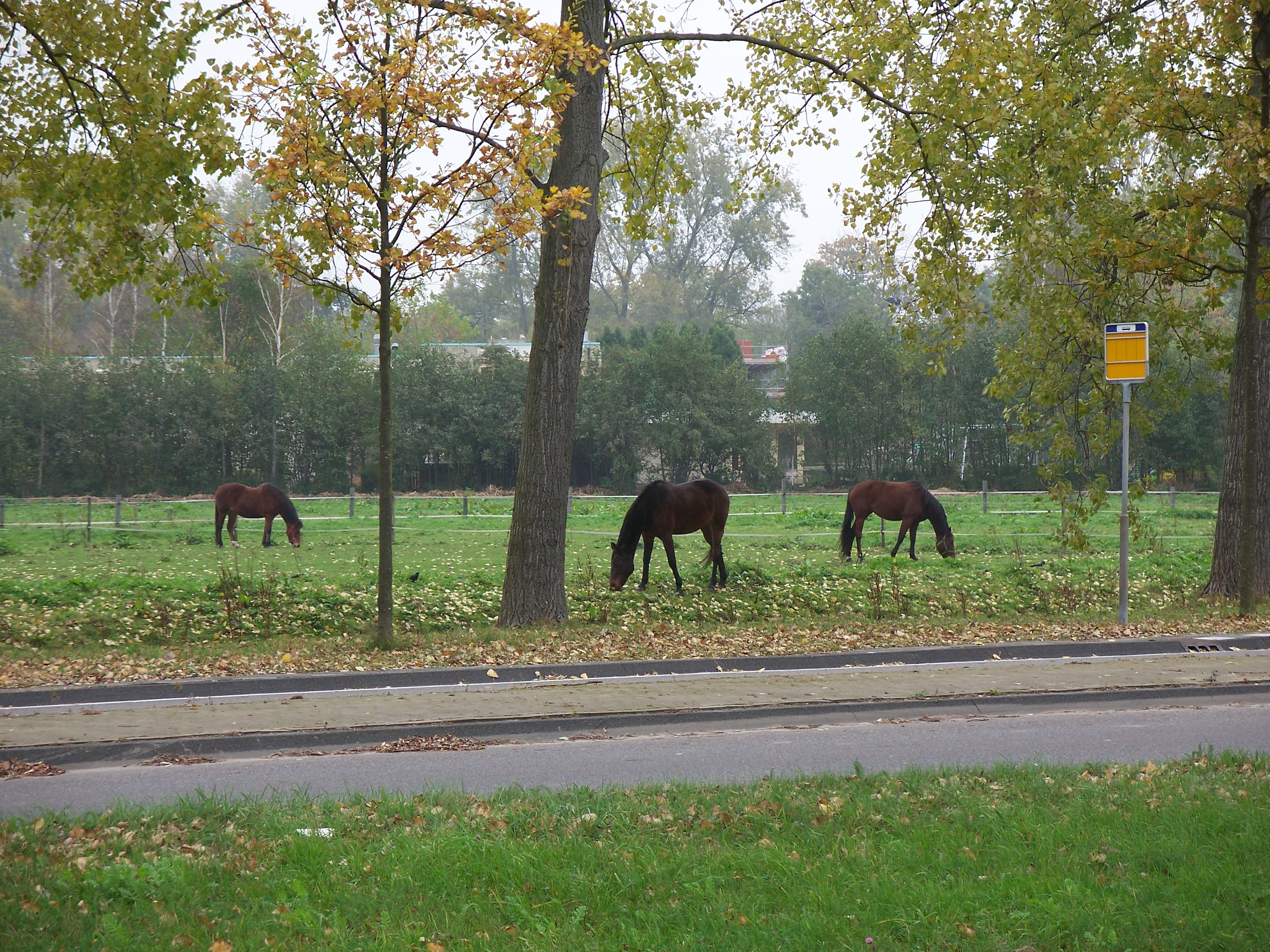 Horses grazing near the conference building
