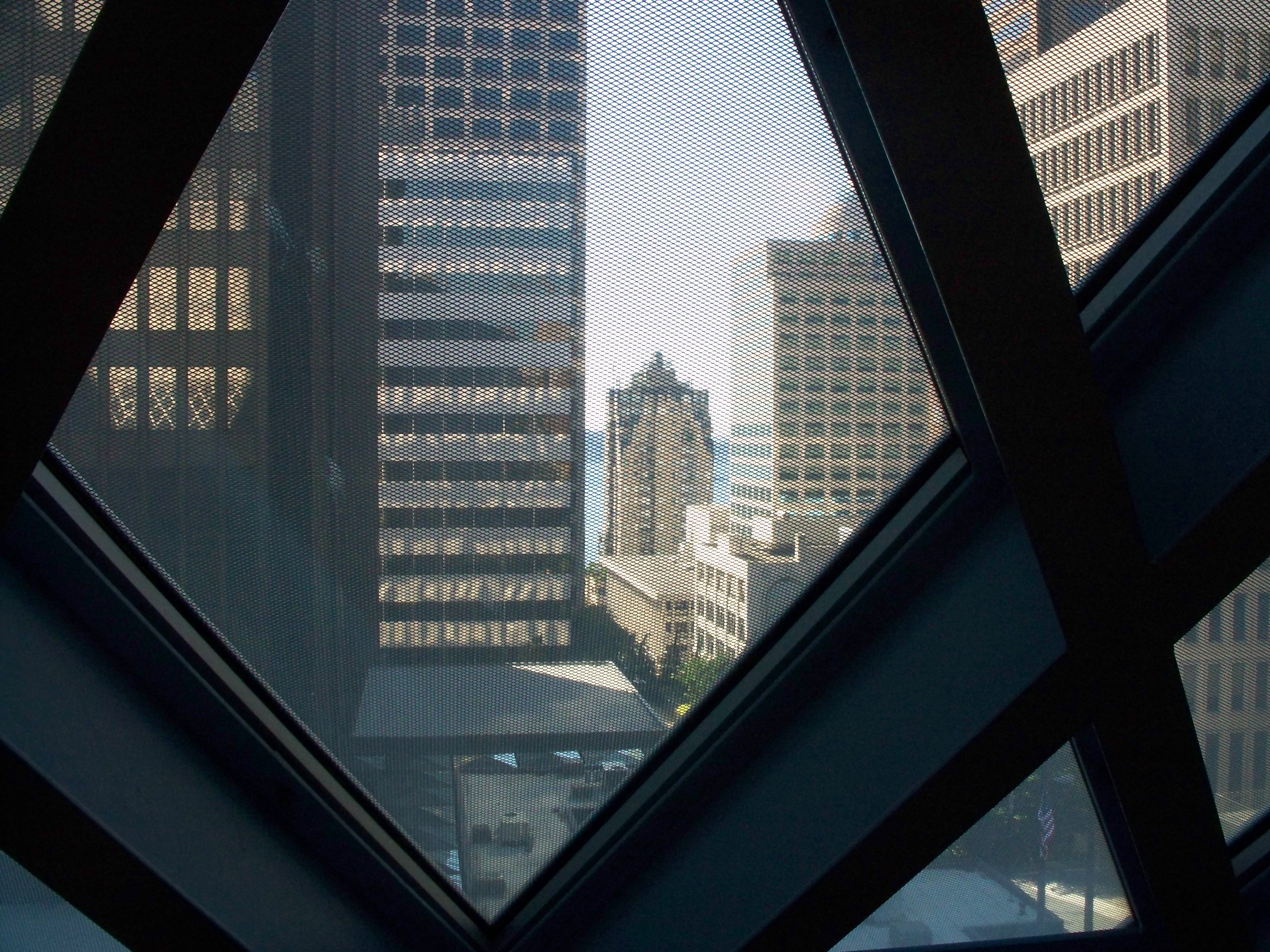 View of Seattle from inside the library