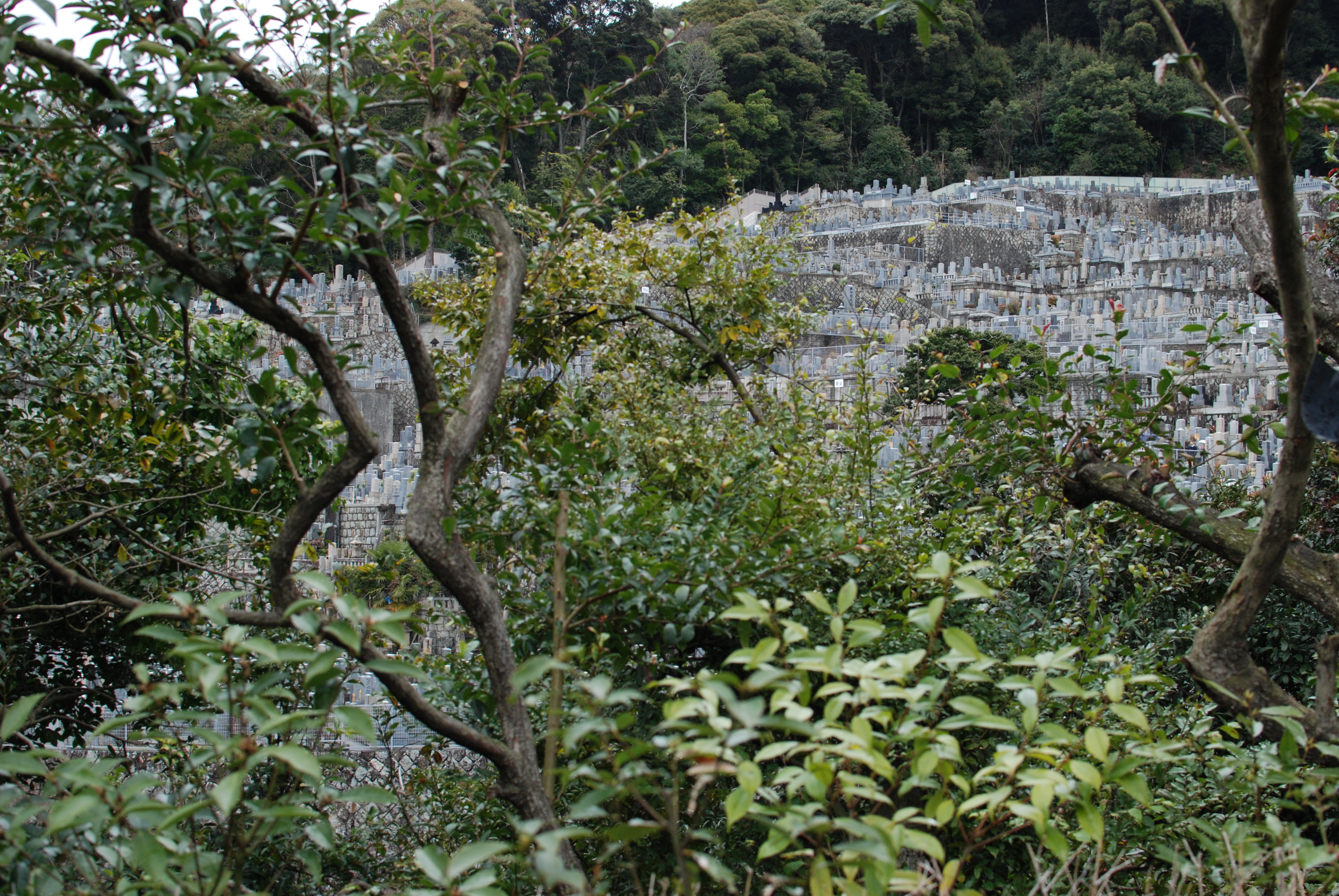 A graveyard built into the hillside
