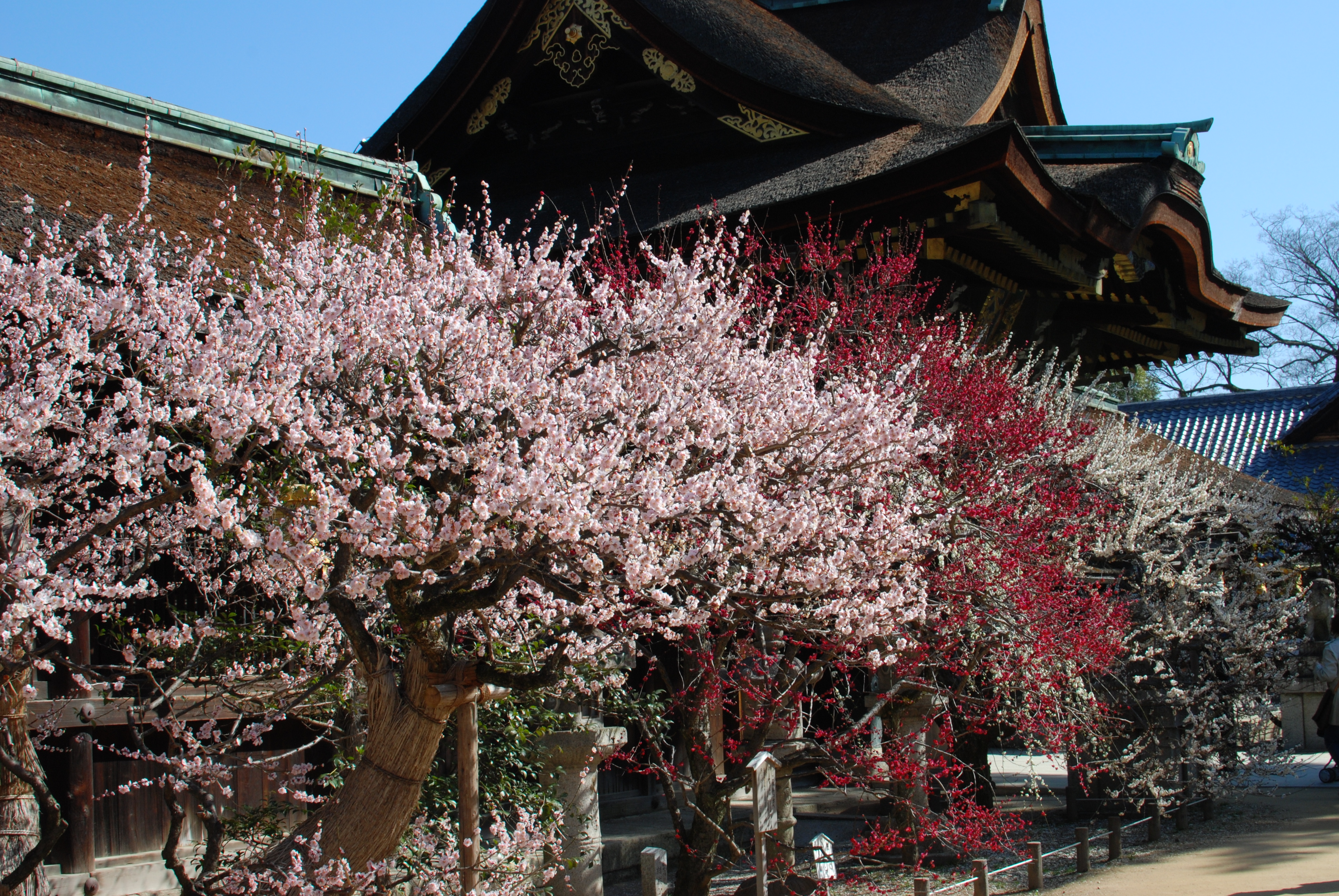Multi-colored plum blossoms at Kitano Tenman-gu