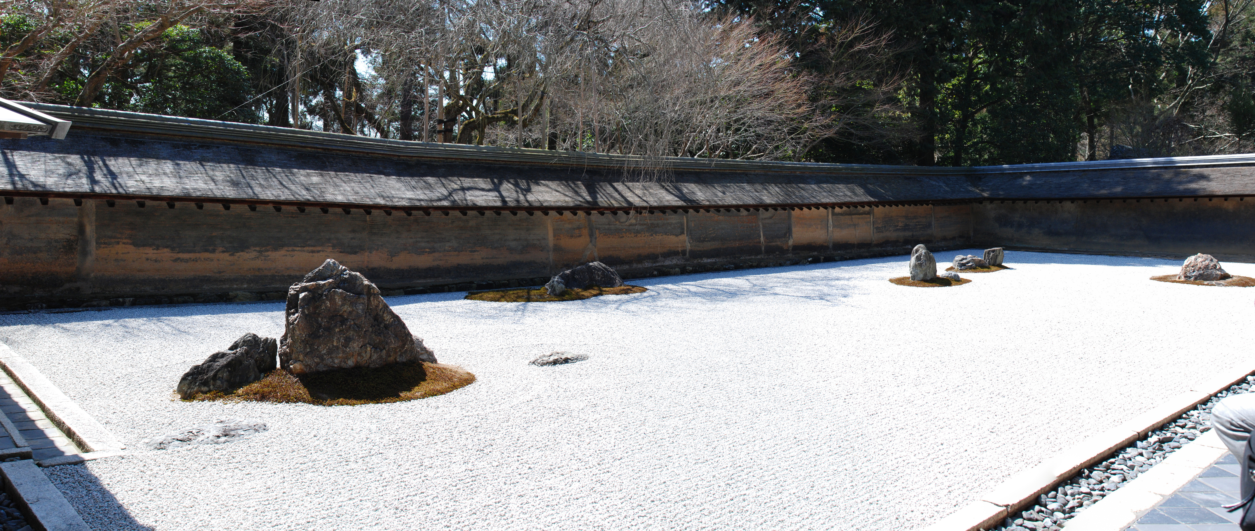 The ancient 15 rock garden at Ryoan-ji Temple