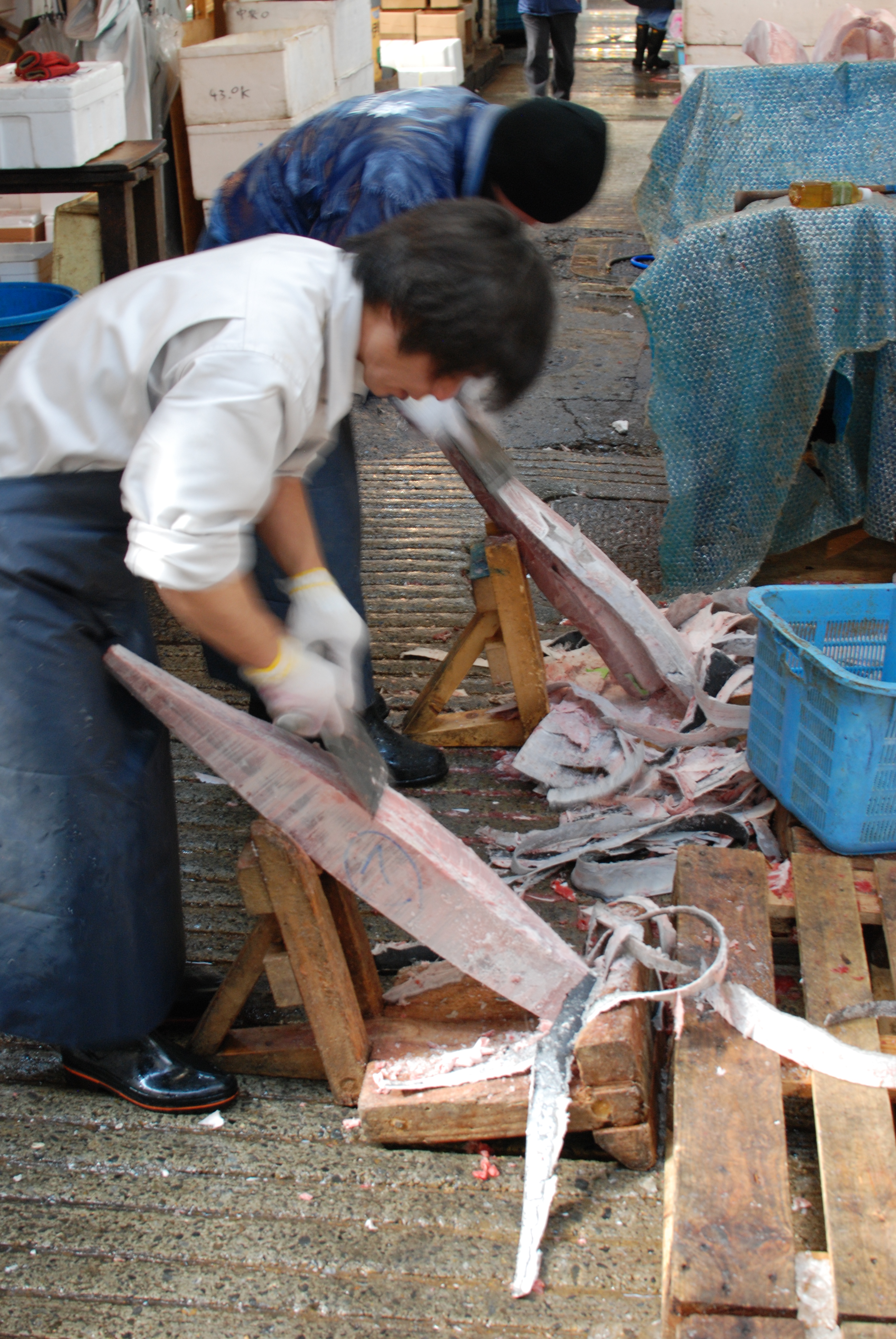 Removing the skin from frozen tuna