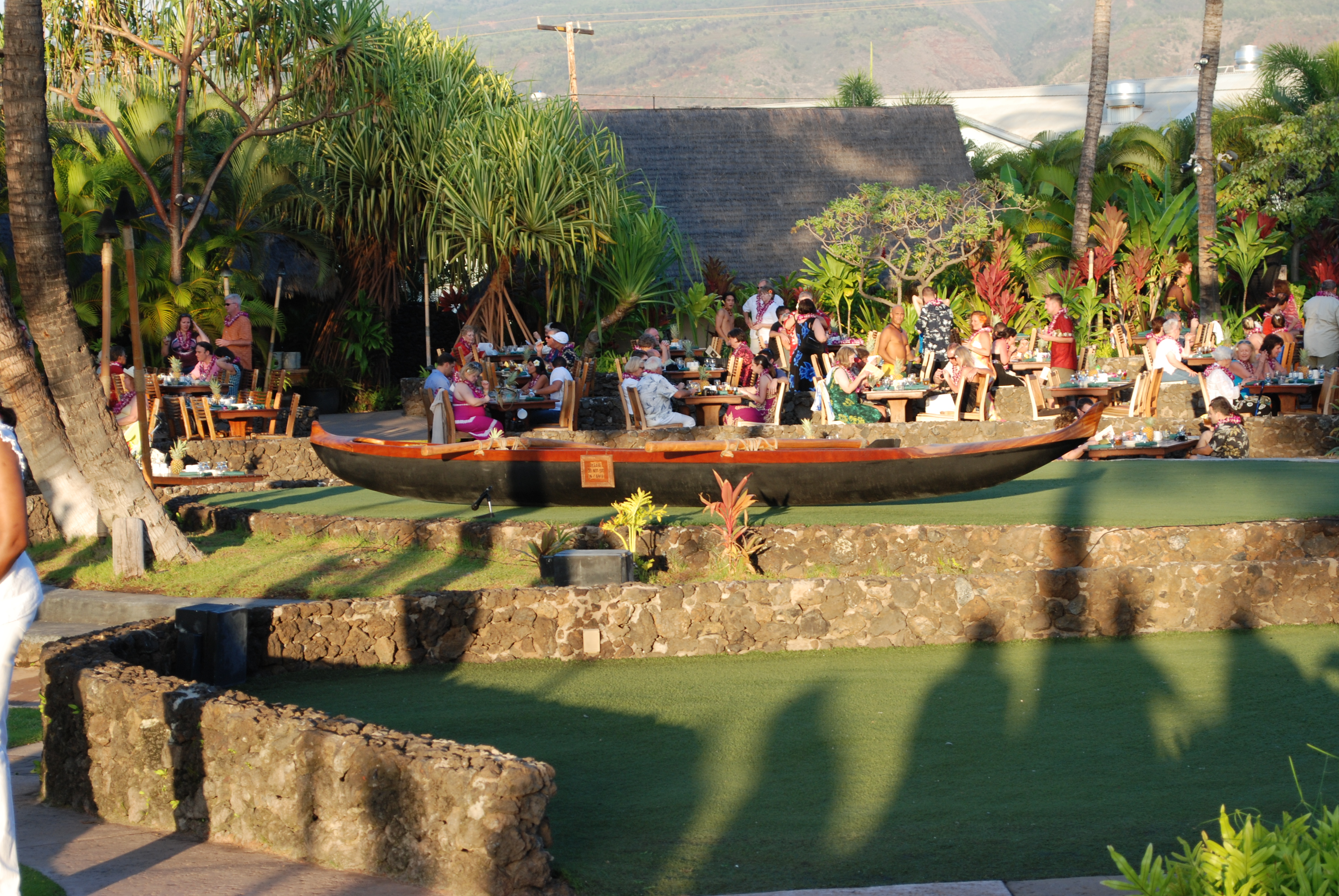 Outrigger canoe on the lu'au stage