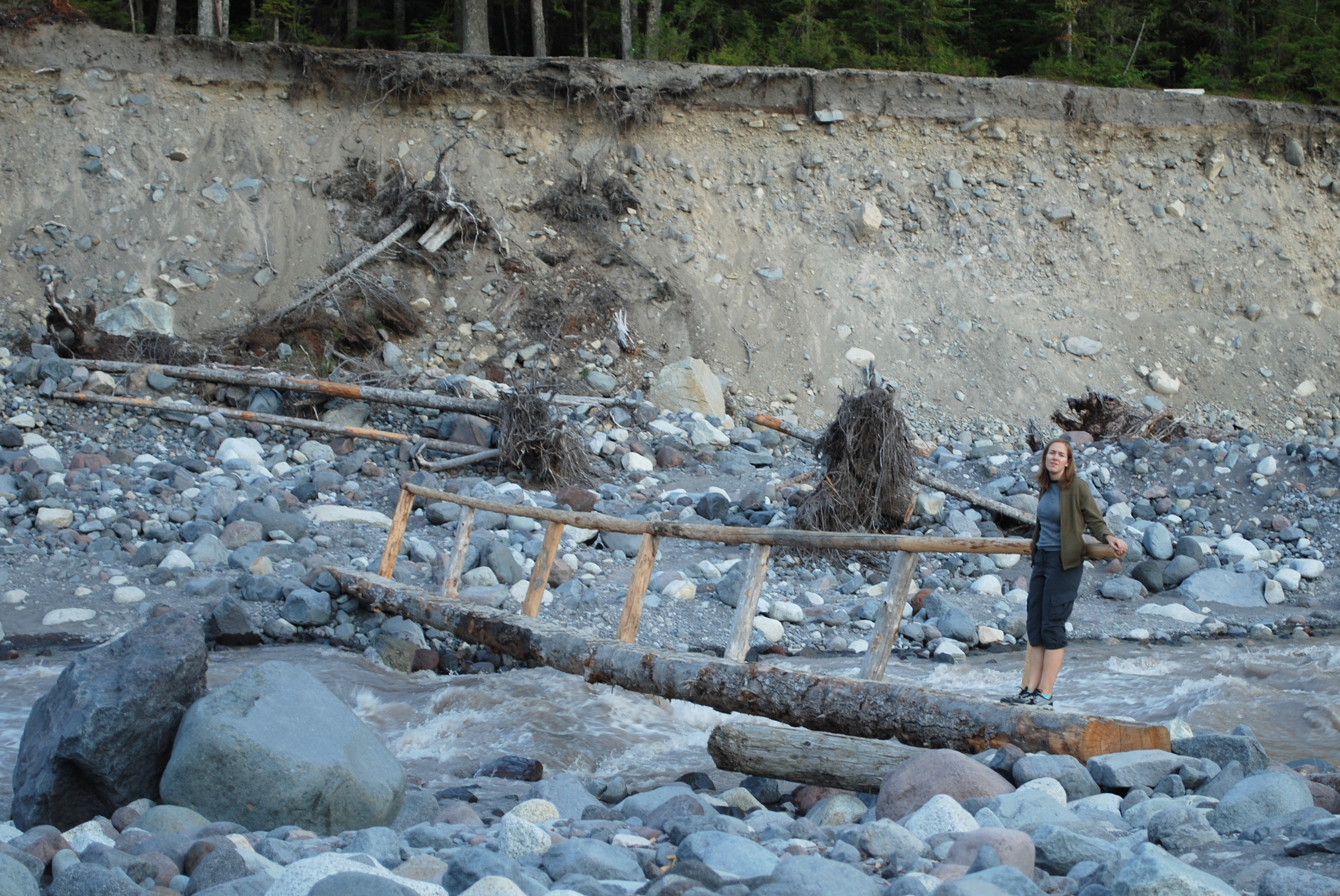 Katie on a log bridge