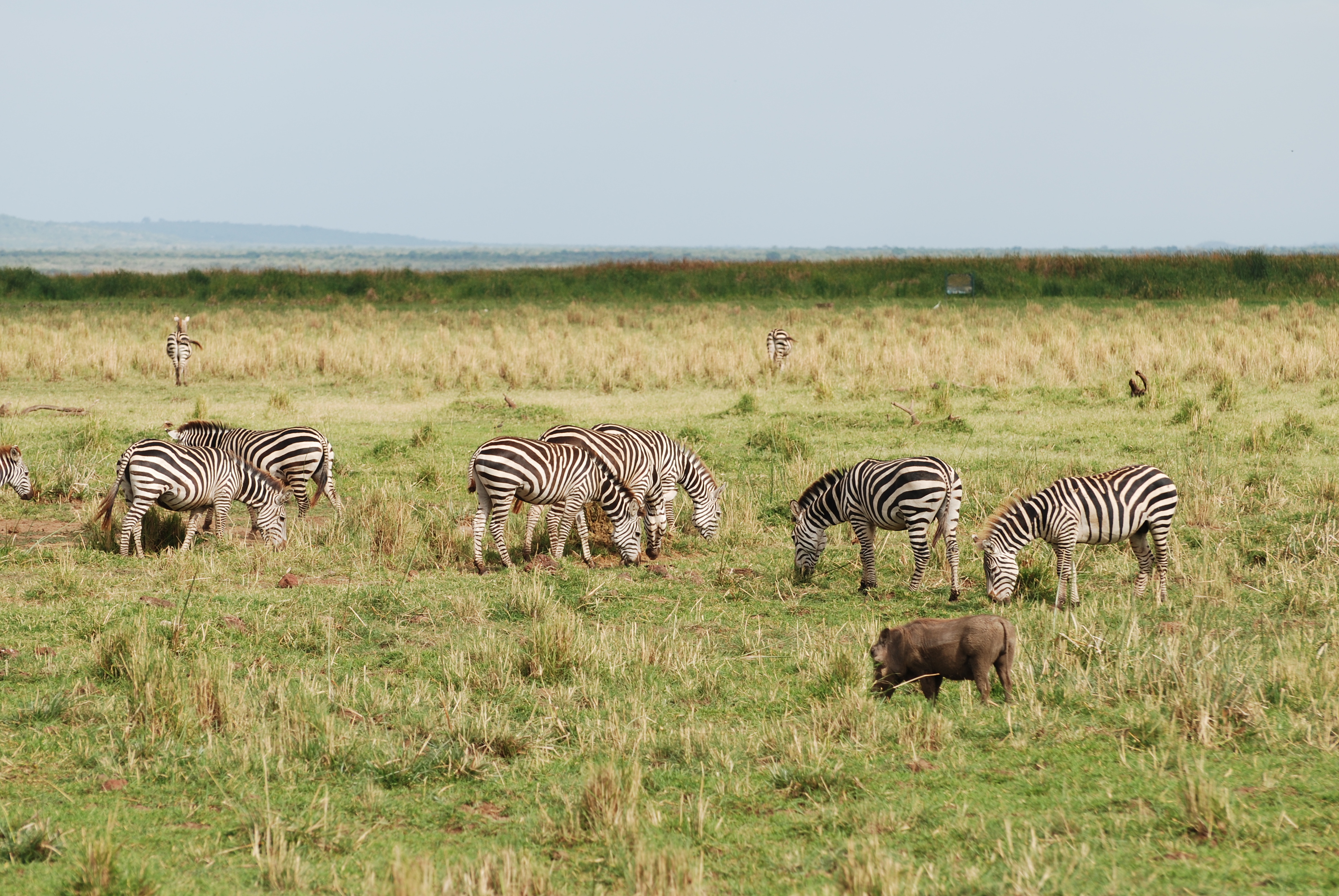 Grazing zebras and warthog