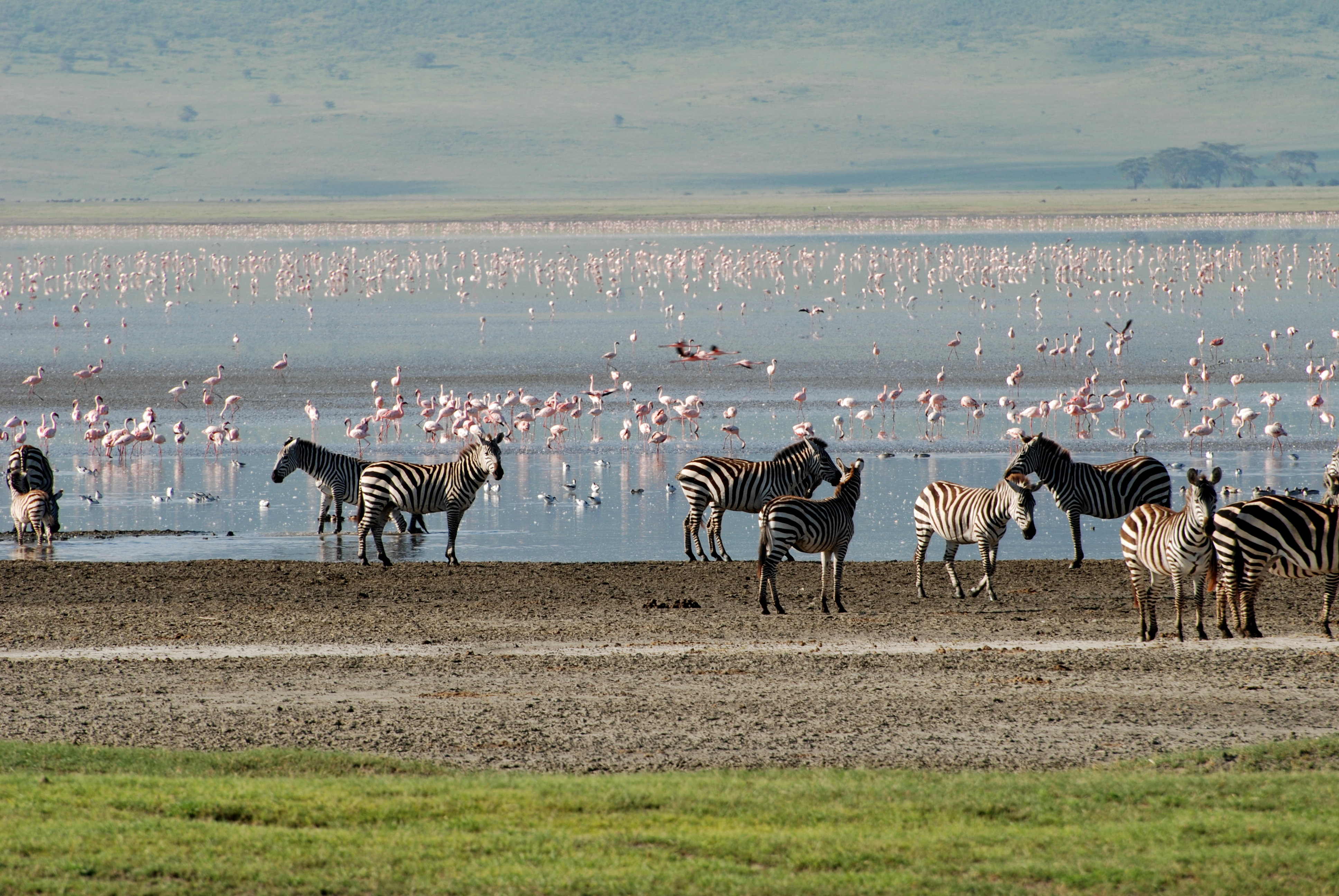 Ngorongoro flamingos and zebras